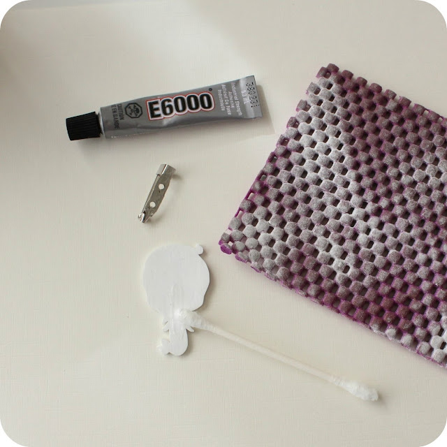 Lightly sand back of image.  Spread a thin coat of adhesive onto brooch pin with a Q-tip and then apply adhesive to the area on the image where you'll be mounting your pin.