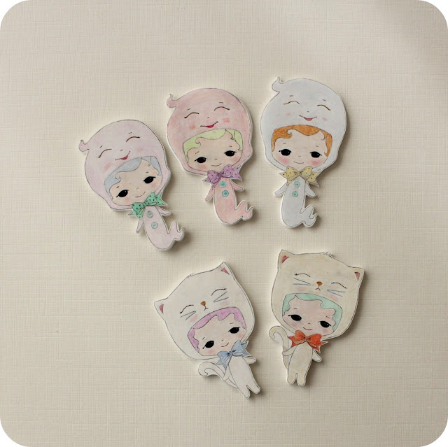 Halloween Ghost and Kitty Shrink Plastic Brooches - Free Tutorial