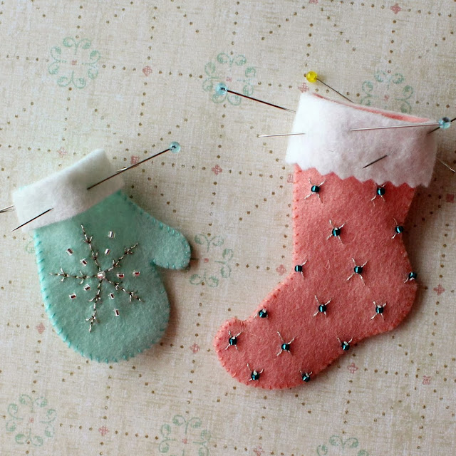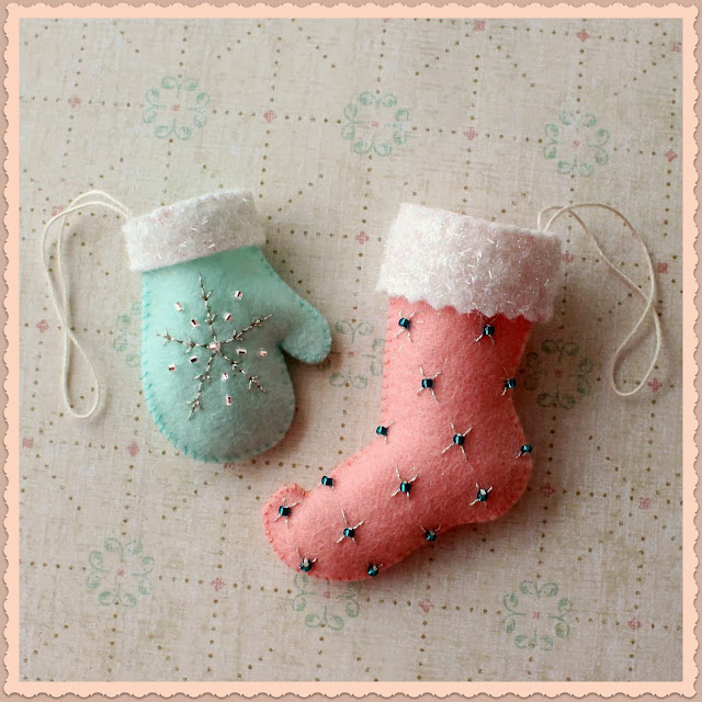 Here's a special little gift just for you - a tutorial on how to make two sweet little felt ornaments, a mitten and a stocking.....